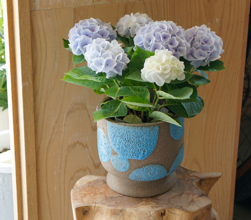 material : Stone Warecolor: Yellow, Blue 底穴なしwaterproof 風合いのある陶土に水玉模様の色釉薬がアクセント。 ラフなタッチのペイントがポップで楽しい雰囲気に仕上がっています。 お部屋がパッと明るくなるようなイエローとブルーが鮮やかです。