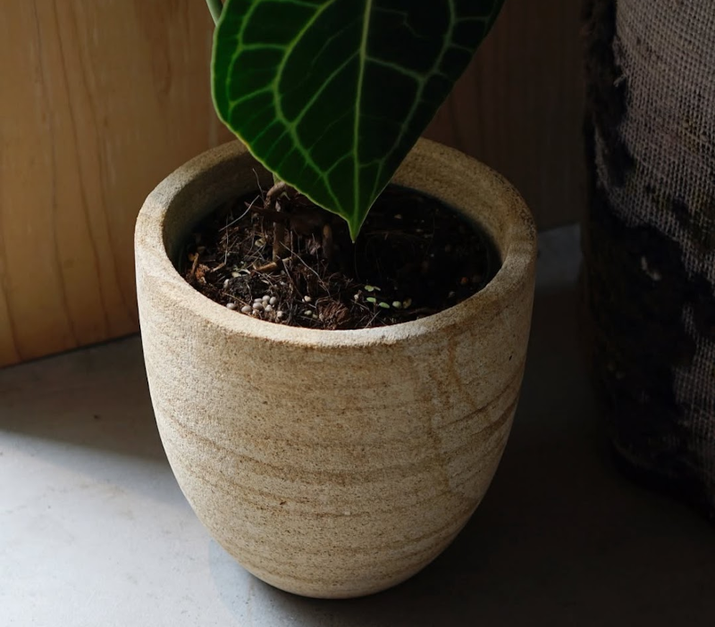 砂岩は多孔質なため、底穴は開いていませんが水やり後はゆっくりと水が抜け出ます。