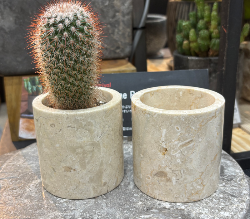 光沢(ツヤあり)仕上げ material:Marble Stone water proof Color: white 底穴なし 人気のマーブルポットシリーズに小ぶりの可愛らしい手のひらサイズが仲間入りしました。奥行きの少ないスペースにも飾りやすいサイジングです。 ※大理石のポットです。 ※天然石を使用しておりますので、色味に若干の誤差が生じます。